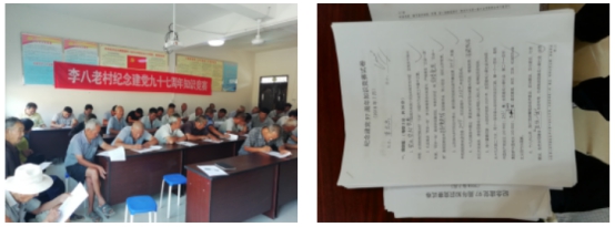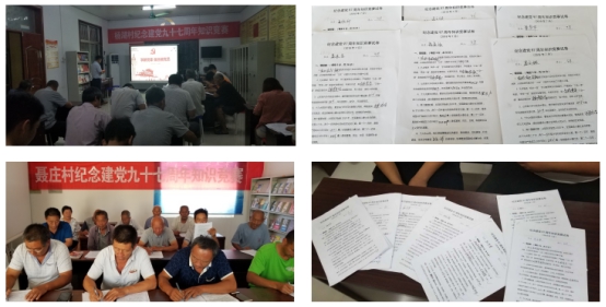 周年知识竞赛题库”,内容涉及党的十九大报告、新党章、中央一号文、山东省乡村振兴战略规划以及基层党建、脱贫攻坚、“两学一做”等方面,并提前印发大家,从中选题考试;在考试中,还对年龄较大的党员实行了开卷、口述等方式,由第一书记现场进行试题分析与讨论,并筹措资金为取得较好成绩的党员发放奖品。通过本次活动,党员干部对习近平新时代中国特色社会主义思想、党的农村政策以及党建工作有了再认识,再提高,再升华,真正做到入眼、入脑、入髓,坚定了做好农村工作的信心,为下一步乡村振兴战略的实施打下坚实基础。